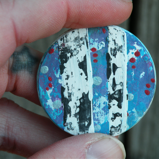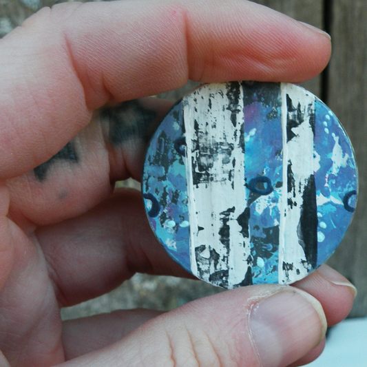 "Strikes of Blue" Original Mini Art on Upcycled Poker Chip