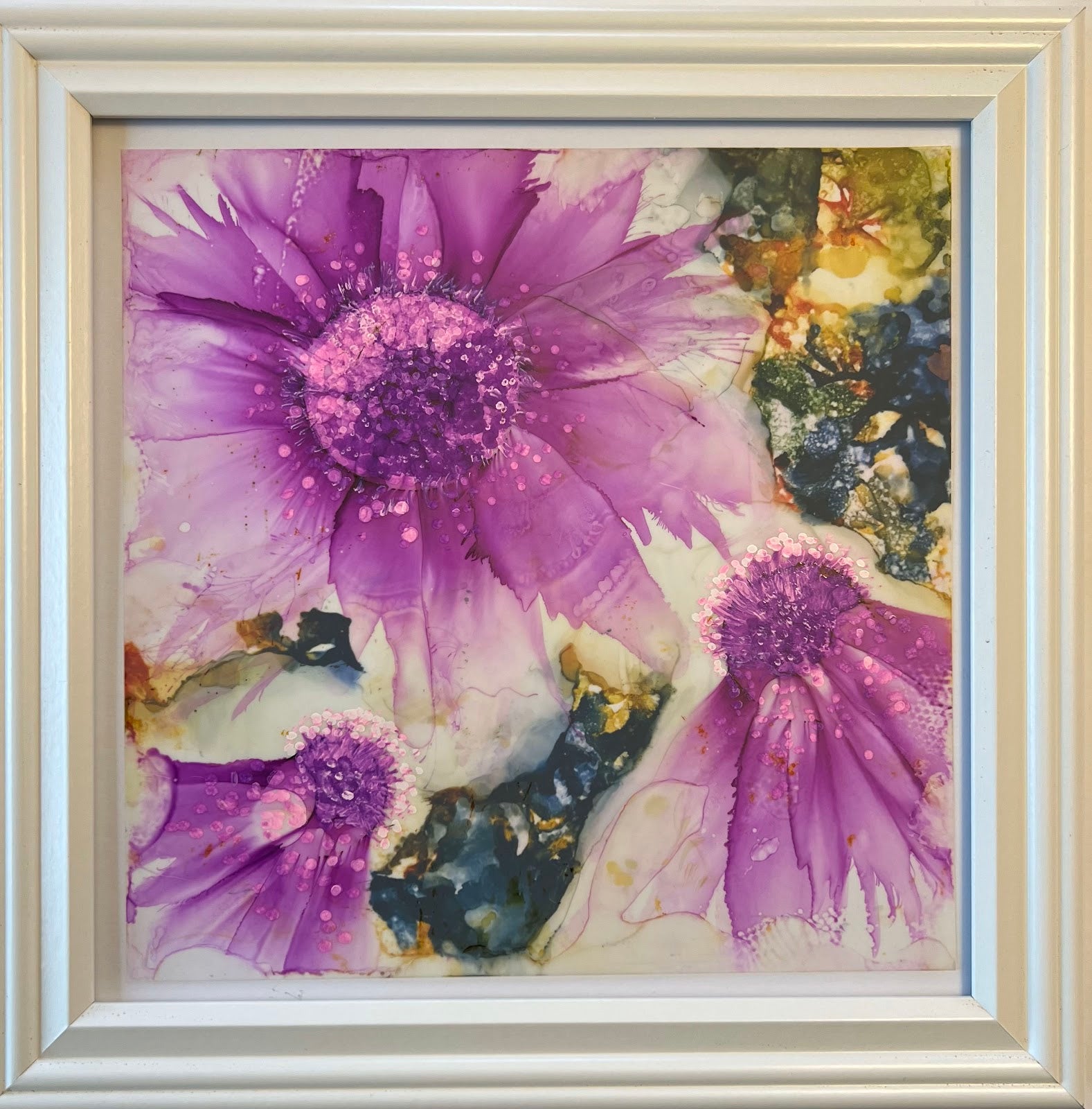 Flower Explosion Original Floral Alcohol Ink Painting is bold, expressive, and full of movement, "Flower Explosion" bursts with the dynamic beauty of purple coneflowers in a captivating modern style. Created with the fluid unpredictability of alcohol ink, this piece showcases rich violets, deep magentas, and soft lavender tones, contrasted by sweeping green stems and delicate petals caught at different angles. The vibrant composition gives the impression of flowers blooming in every direction—alive, untamed, and radiant.