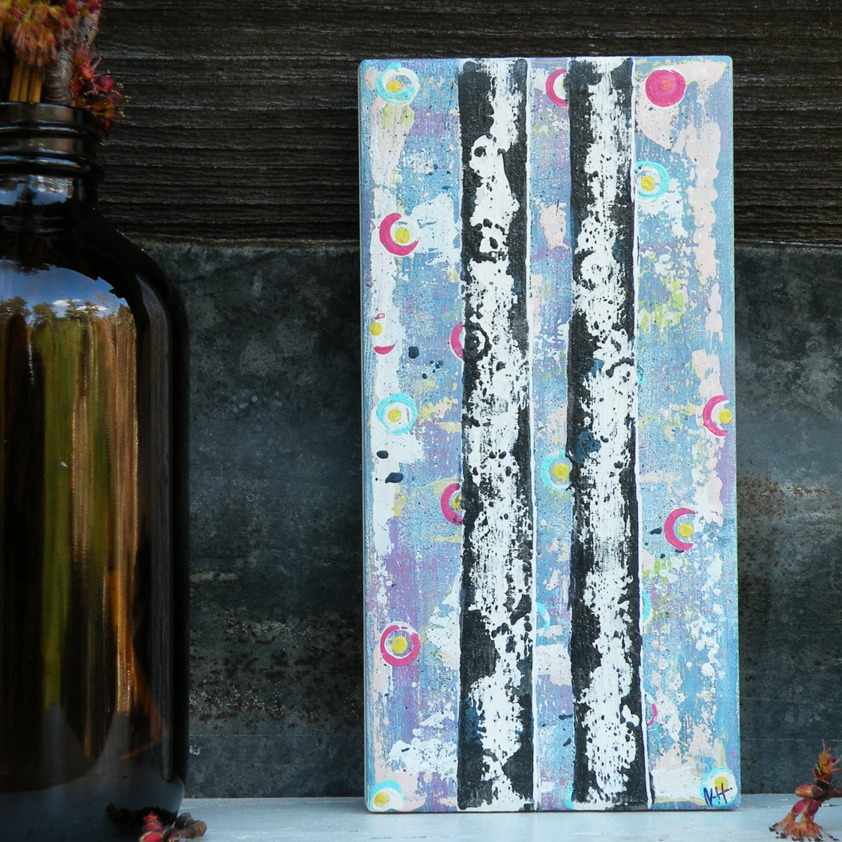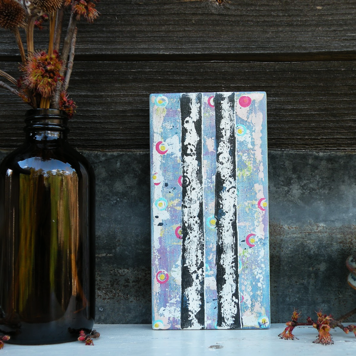 My Tiles & Time Birch Collection is a series of textured, vibrantly colored, joyful birch trees which I lovingly hand painted on upcycled tiles.