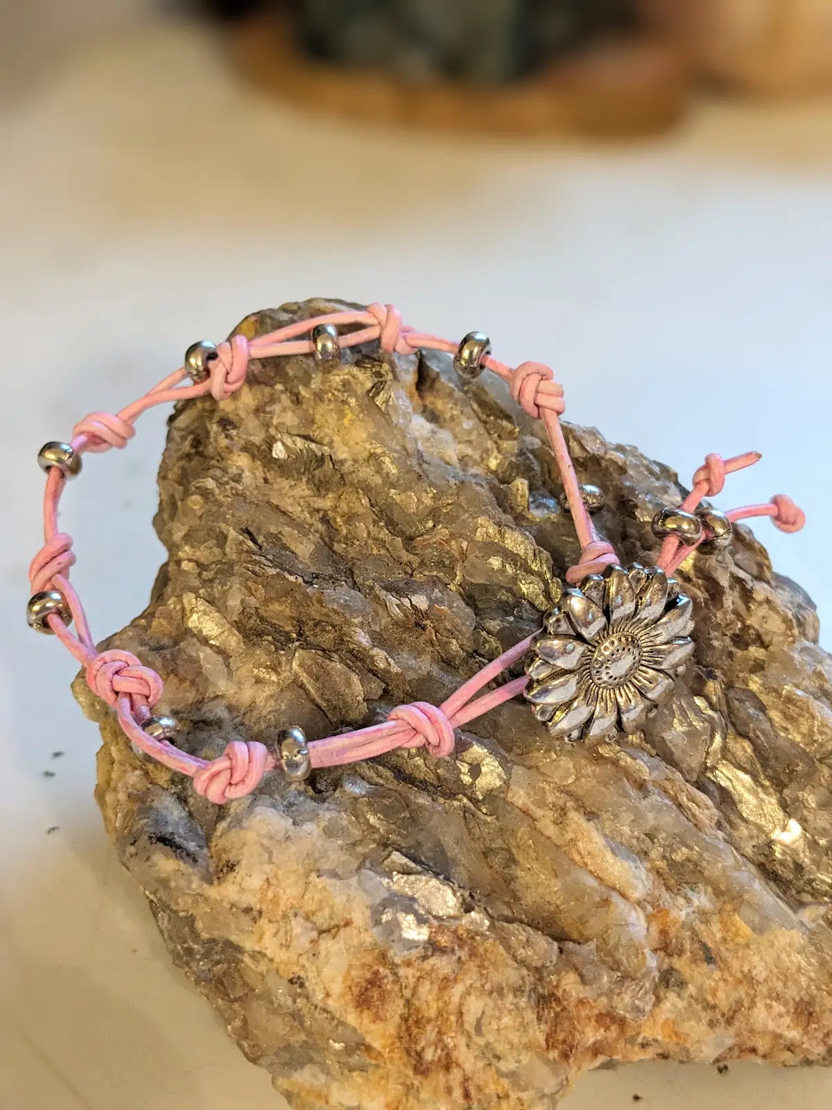 Pink Knotted Bracelet with Flower Button
