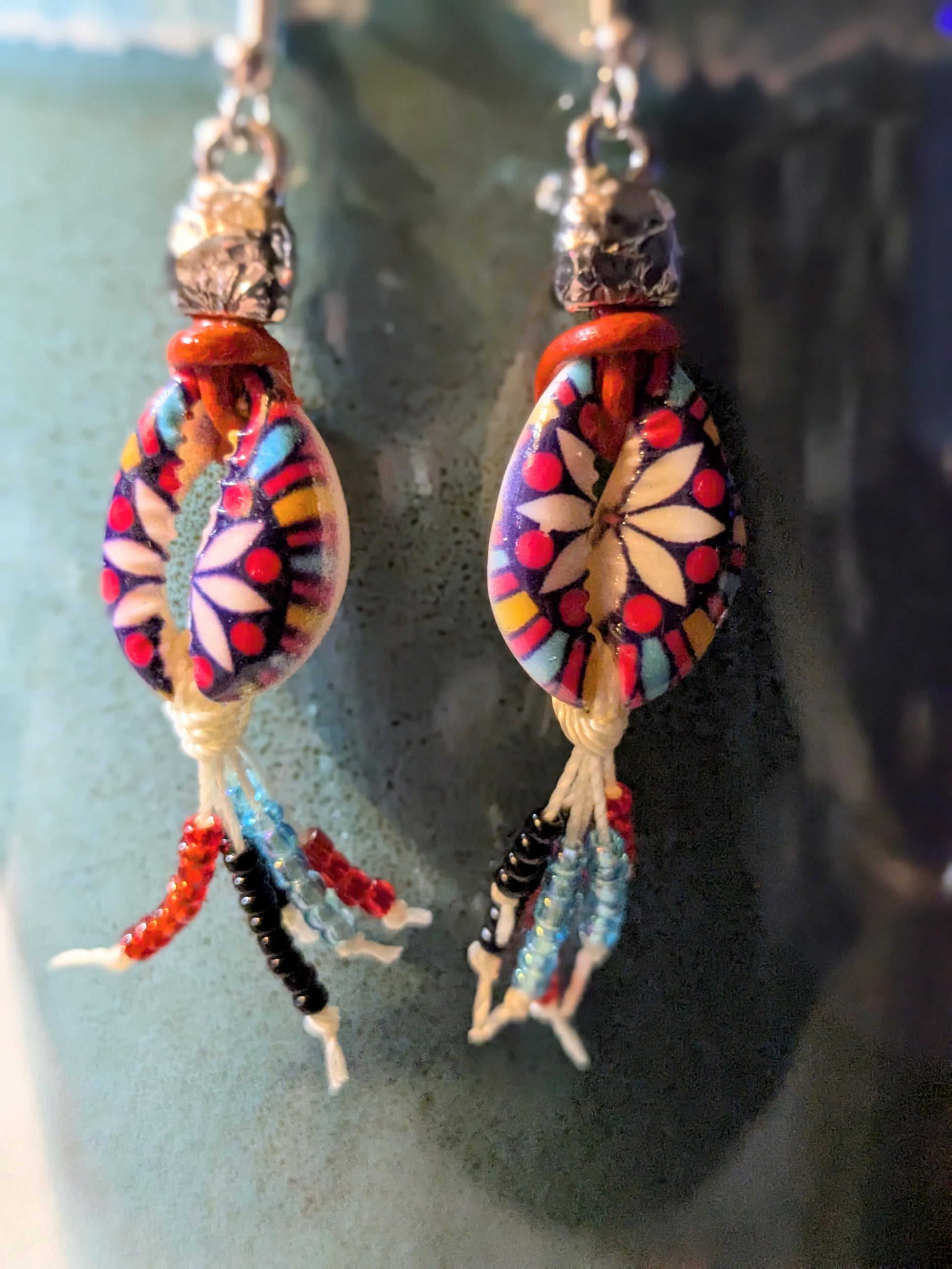 Boho all the way! Cowrie shell earrings with seed bead dangles and silver findings.
