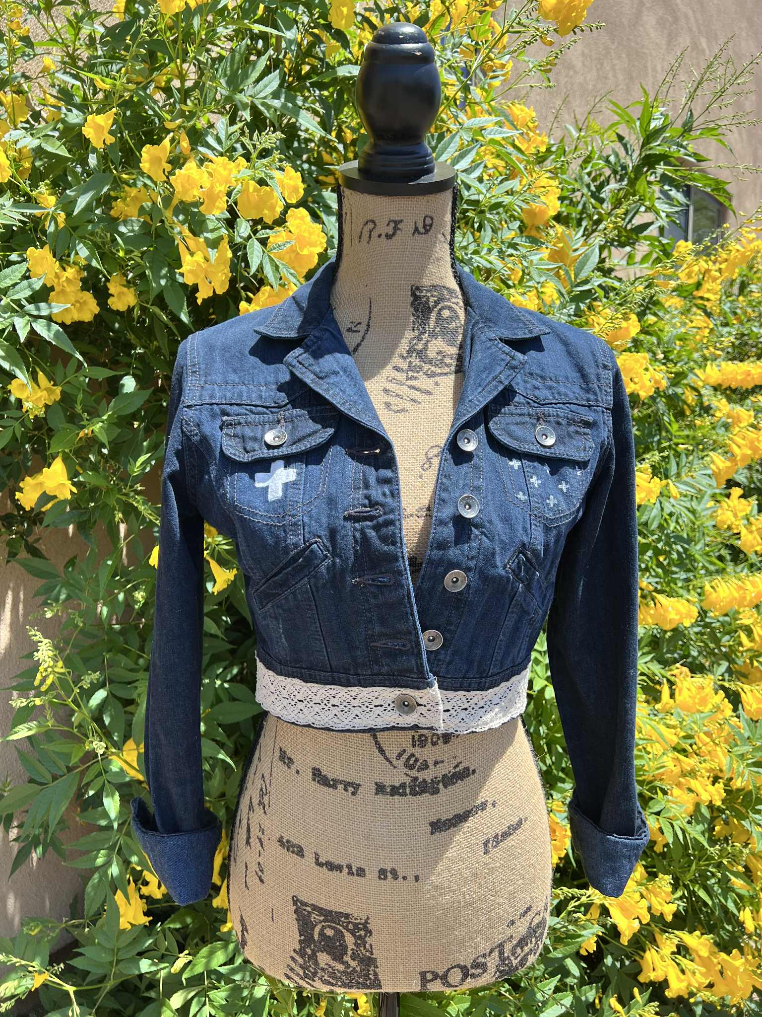 Rein in Your Fears Upcycled Cropped Denim Jacket