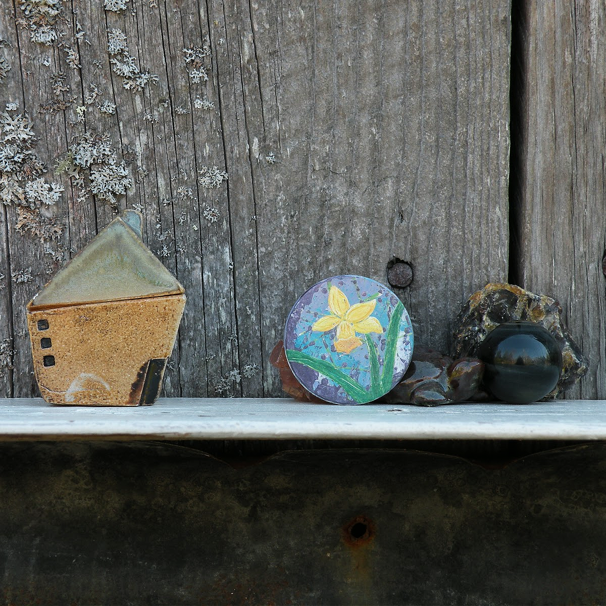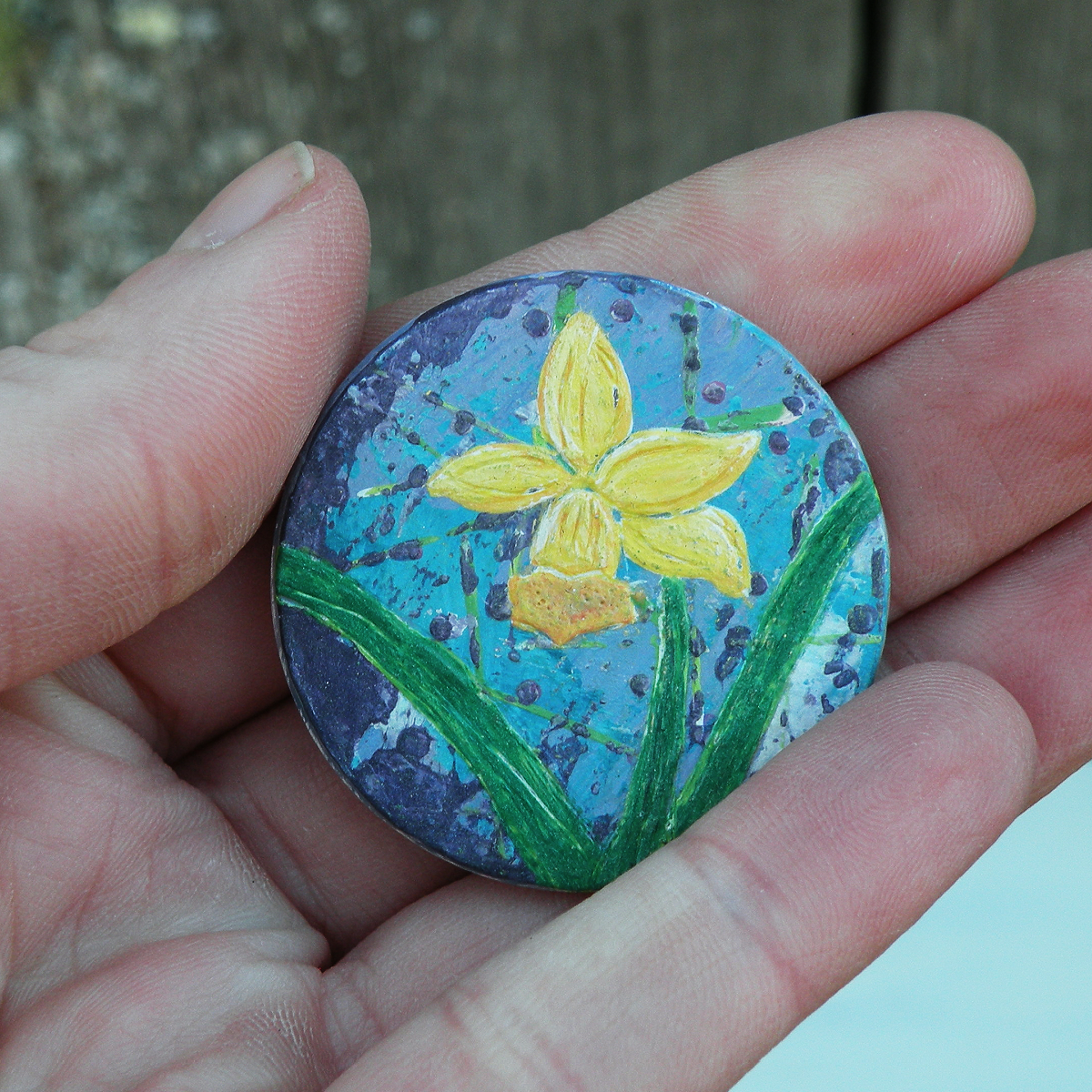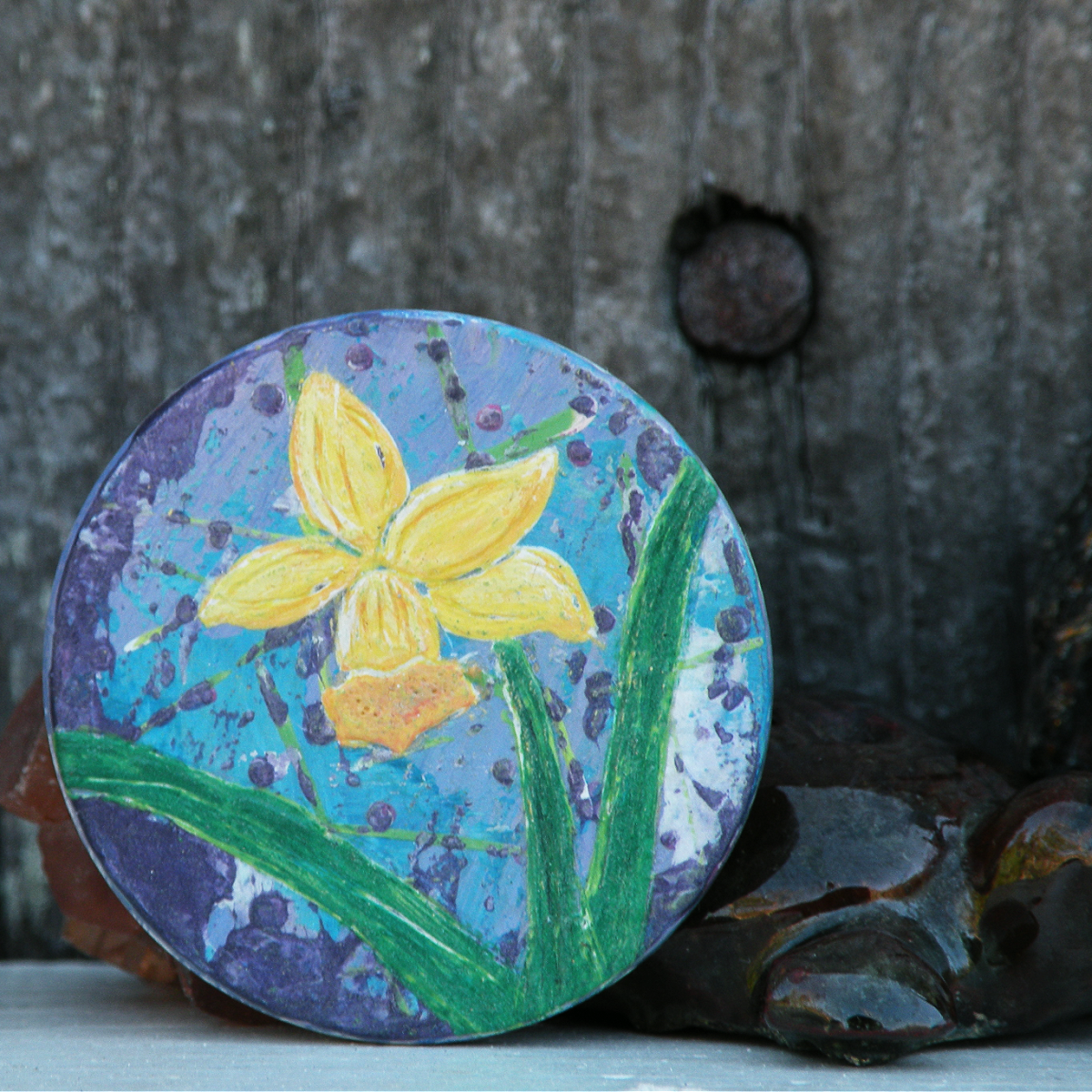"Spring Daffodil" Original Mini Art on Upcycled Poker Chip