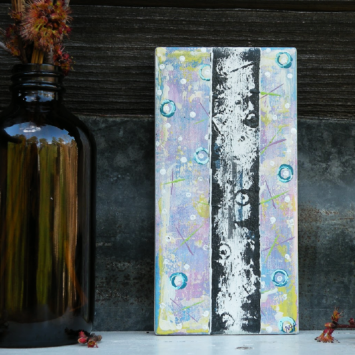 My Tiles & Time Birch Collection is a series of textured, vibrantly colored, joyful birch trees which I lovingly hand painted on upcycled tiles.